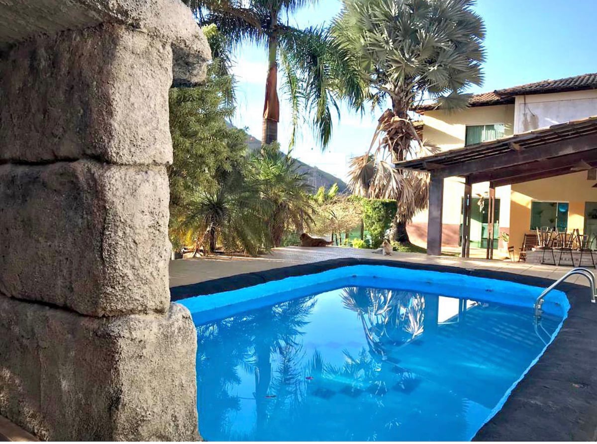 venha descansar integrado com a natureza, ideal pra família, lugar tranquilo. suíte com ar condicionado,tv, wify, 1 cama king bem confortável e espaçosa e uma cama de solteiro, temos uma piscina com espaço pra criancas, lucas extremamente tranquilo, excelente pra home office, aqui só se houve canto dos pássaros.