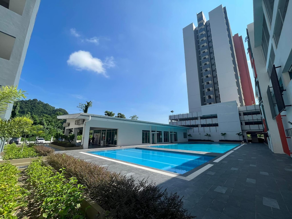 The apartment is located at central of Ipoh With Mountain & Sunset View. Suitable place for couples, solo adventurers, business travelers, and families . Living Hall & Room with aircon. 2Queen bed. 2parking. (WIFI Ready) Place around us : 1 km to Taman DR , Nifayyi Warung & Kafe,Hospital Besar Ipoh 2 km to Restoran Yong Suan(Nasi Ganja Ipoh) Stadium Ipoh , 3 km to Concubine Lane 4 km to Ipoh Parade ,Aeon Kinta City , Gerbang Malam , 5 km to Gunung Lang WA-017 586