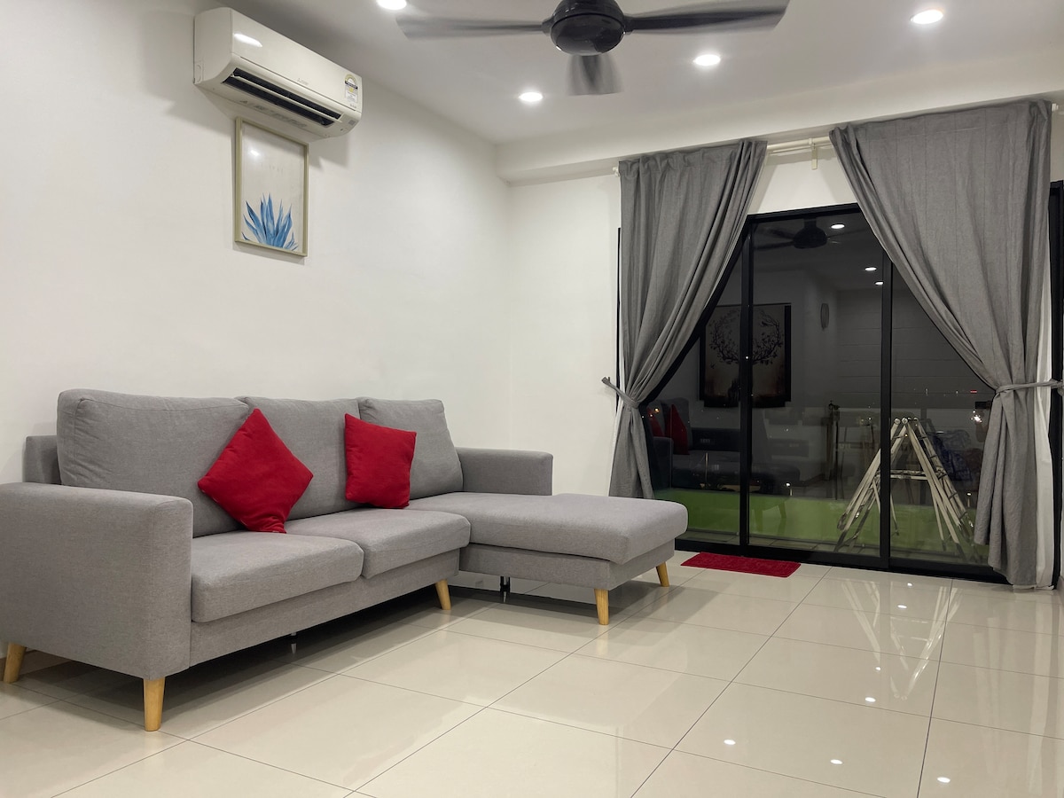 A comfortable homestay with the build in water park within the condo. The condominium is well equipped with the gym room, playground and etc. Our unit is well renovated with paintings , cooking utensils and not to forget the washing machine to ensure that you always have clothes to change especially during hot weather. Our location is strategic and accessible to AEON shopping complex , kopitiam (hawker's stall). Install GRAB for transportation. Note: WIFI is available now.
