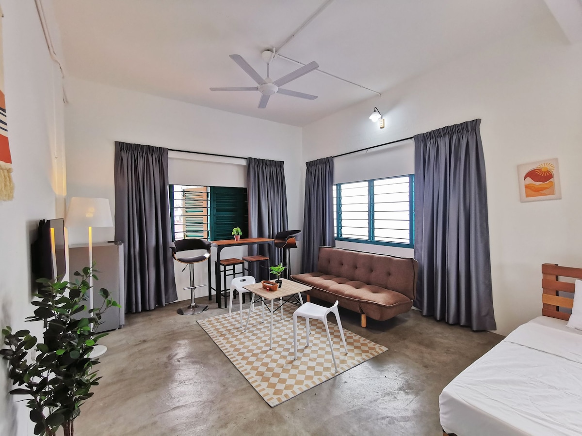 Enjoy a stylish Getting around in Ipoh is easy when staying strategically placed right in the heart of the city. Your family will be close to everything when you stay at this centrally-located place. Experience the "RUSTIC" theme in our STUDIO Suite 6 on the 2nd floor (access by staircase), fit for 4pax. Centrally located, just 1minute drive to the town center and local eateries. Perfect for short & long-term stays, company trips, weddings, and events. Enjoy a stylish stay in the heart of Ipoh!