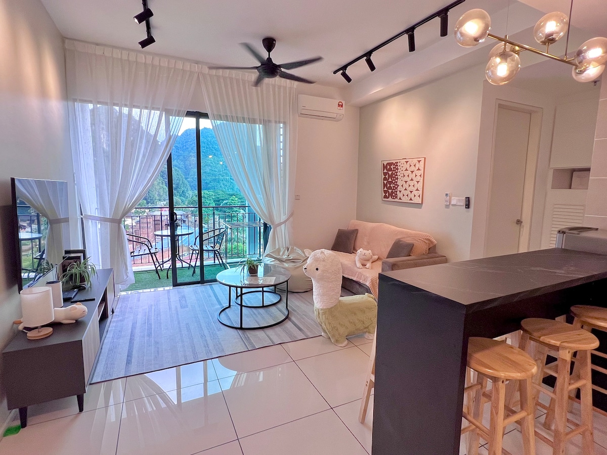 Ojie’s@Onsen is highest floor level--studio apartment heartily designed to fulfill your vacation needs with city and hill view. The unit furnished with King bed,Wi-Fi, OLED TV with Netflix, Cuckoo water purifier, smartlock door for self check in/out and 24hr outdoor CCTV security. Amenities such as gym, games room (snooker & foosball), swimming pool, hot spring pool & sauna room available. Located in a serene vacation spot surrounded by Ipoh natural landscape ,next to Sunway Lost World of Tambun