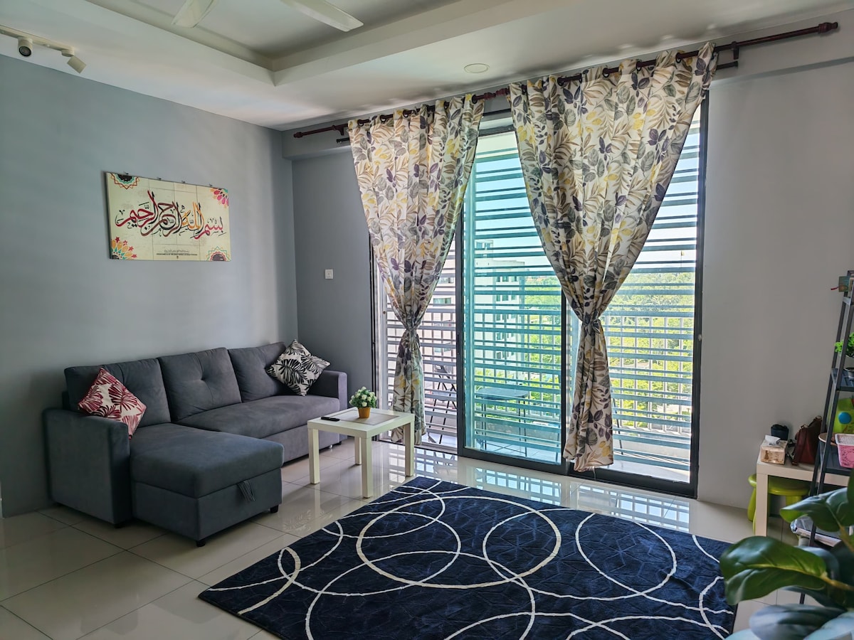 The unit can fit 4-7 guests . Free hi-speed Wi-Fi . TV-Netflix, Disney Plus, MyTV. . 1 queen bed, 2 single beds, 3 futons & 1 sofa . Living room & master bedroom (air-conditioned) . Bedroom 2&3 (ceiling fan) . Water heater-warm shower . Kitchen-stove,refrigerator,microwave, electric kettle & rice cooker . 2 towels provided (for extra,pls request-add rm5/pcs) . Close-by to many attractions, eateries & waterfall . Only 5 minutes drive to Mydin Meru and Bus Terminal Aman Jaya, Ipoh