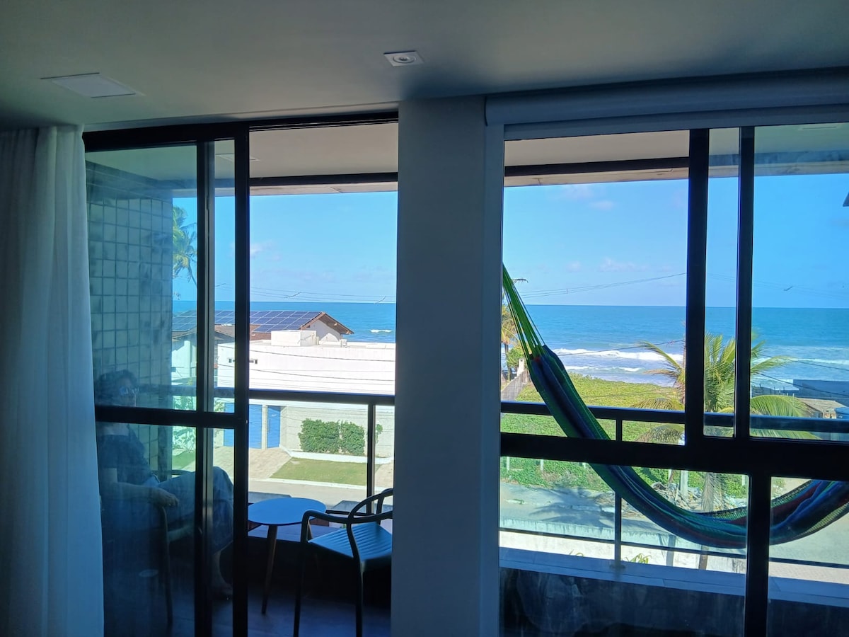 ✔️Flat no 3°Andar em frente ao mar a 20 passos das areias da Praia e apenas 9 minutinhos caminhando até a Famosa Rua das Sombrinhas, que fica no Centrinho (Vilinha) de Porto de Galinhas. ✔️Varanda privativa com vista para o mar, ar condicionado, smart tv 55", piscina, academia, estacionamento rotativo. ✔️Ideal para até 3 pessoas, casais, roupa de cama e toalhas de banho são fornecidas. ✔️Veja o nascer do sol sem sair da cama, em dias de céu aberto e conforme a estação do ano.