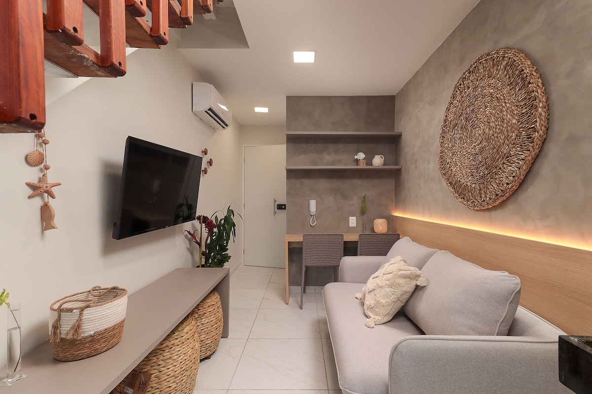 A Casinha Laranja foi ambientada pensando no bem estar dos nossos hóspedes. Sala e cozinha integradas e acolhedoras remetendo ao artesanato local. Na área externa, o jardim com churrasqueira, espreguiçadeira e amplo terraço para proporcionar momentos de confraternização. Na parte superior, duas suítes confortáveis e espaçosas e uma varanda com rede para relaxar ouvindo o barulho do mar. A Casinha Laranja fica a 50m da Praia e a 1,3 km do Centrinho de Porto de Galinhas.
