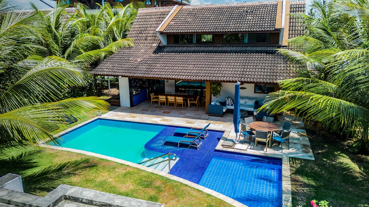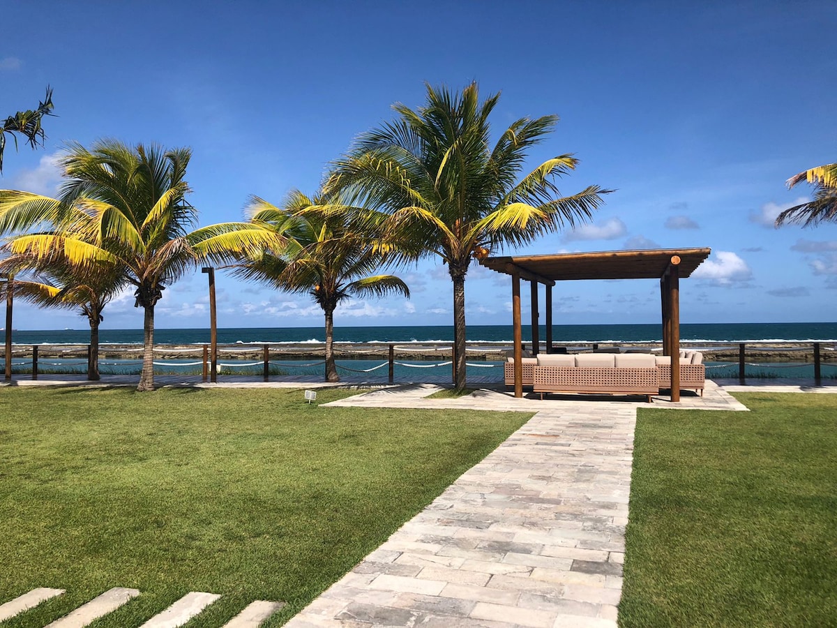 Bangalô novo de frente para o mar com 7 quartos mais um quarto de serviço, piscina privativa, varanda gourmet, churrasqueira. Excelente lugar para férias em família inesquecíveis. Lugar ideal para quem procura conforto, paz e tranquilidade com segurança e estrutura completa de condomínio (pista de corrida, bicicleta, academia, quadra poliesportiva, de tênis saibro, beach tennis, cinema, brinquedoteca, sala de cinema, sala de jogos, restaurante, conveniência, recepção 24h, equipe de manutenção).