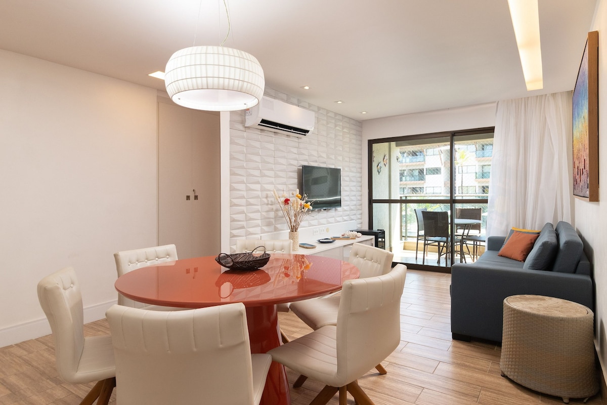 Desfrute de férias inesquecíveis em Porto de Galinhas no flat PREFERIDO DOS HÓSPEDES que está no TOP 1% MELHORES AVALIADOS! Apartamento 3 QTS Alto Padrão Luxo em Condomínio Resort Beira Mar, com uma estrutura de lazer fantástica e parque aquático com + de 20 piscinas. A 3km do centrinho de Porto e 1km das piscinas naturais do Cupe. -Ar Cond. SALA e QUARTOS -Cozinha Equipada -WIFI 200m -Estacionamento -Enxoval Completo (cama e banho) -Café da Manhã, Transfer e Passeios (Opcionais) - Berço