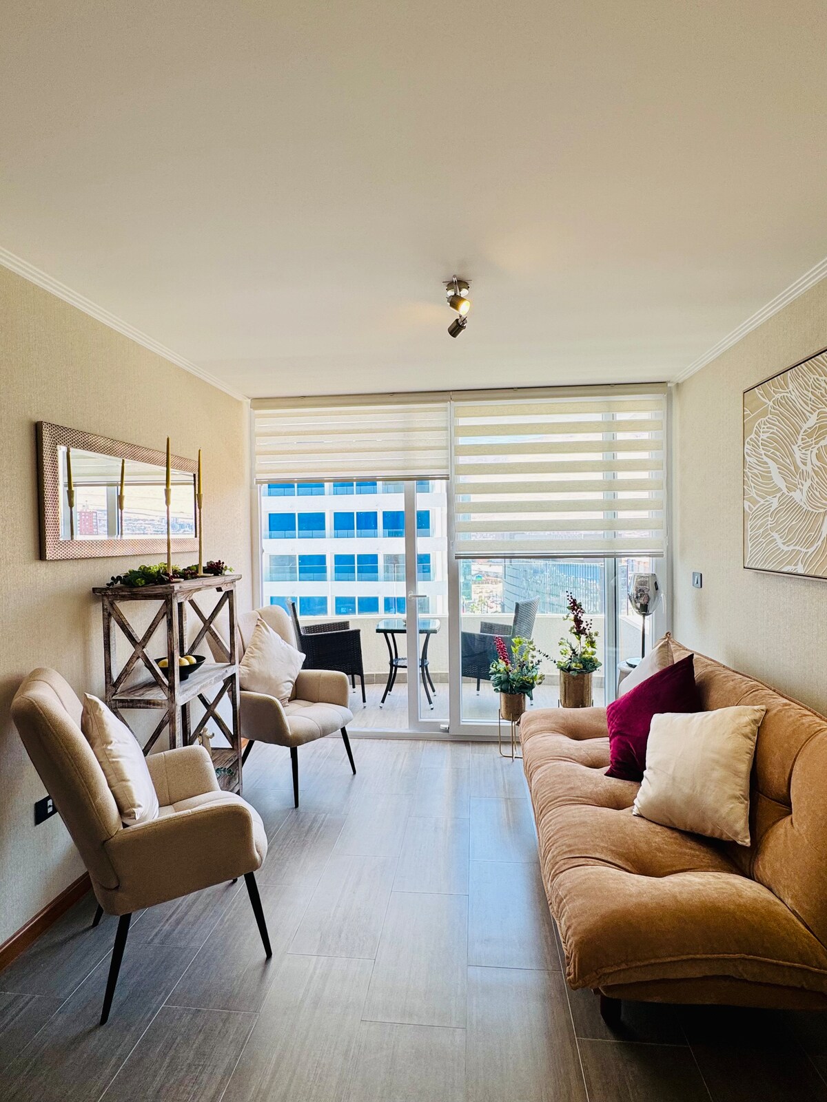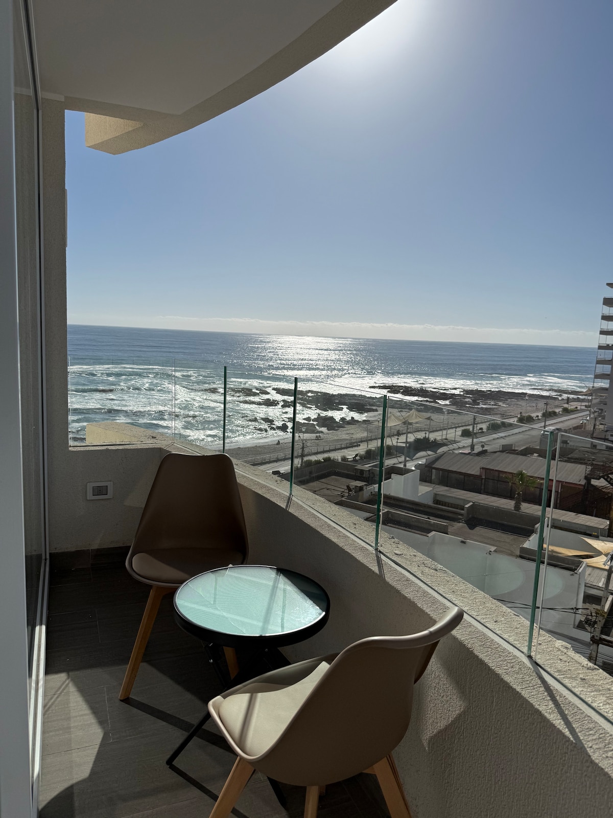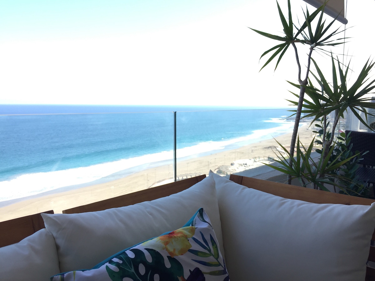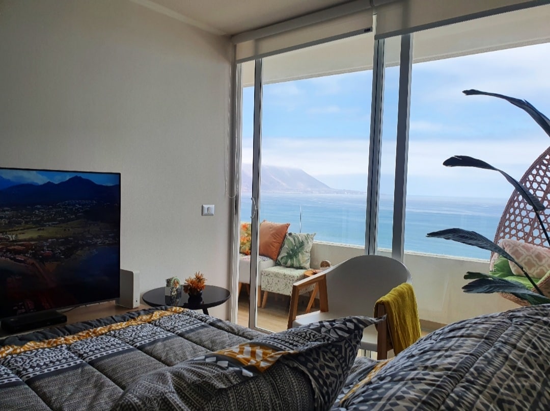 Disfruta de una increíble experiencia en nuestro departamento ubicado en el piso 23 en primera línea frente al mar, con vistas increíbles y cercano a puntos claves de la ciudad (Supermercados-centro comercial- bencineras-Restaurantes) El departamento se encuentra equipado y amoblado completamente para que tengas una experiencia más cómoda, para un máximo de 4 personas con cama matrimonial y sofá cama, una terraza que te permitirá disfrutar y compartir mientras ves un lindo atardecer.