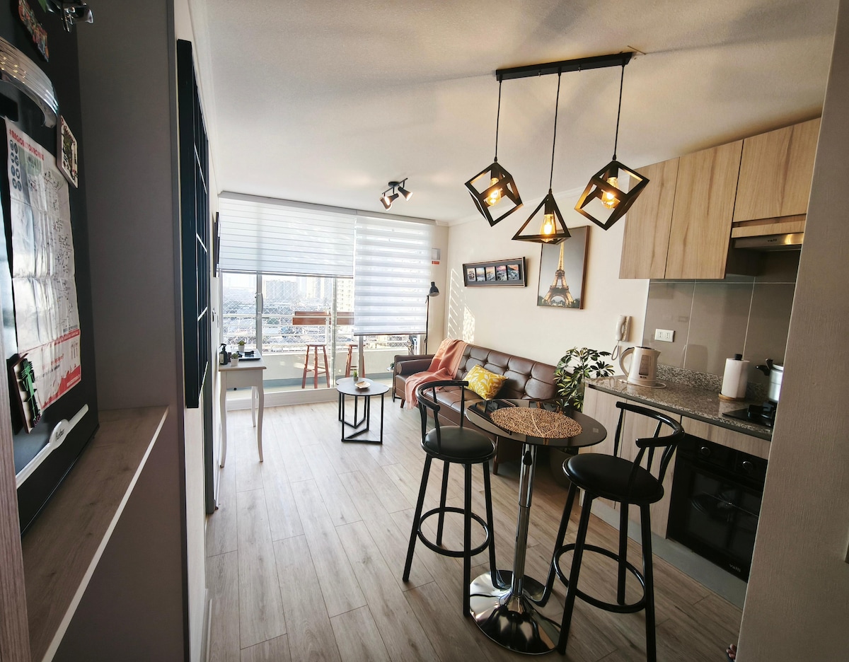 Disfruta una estadía única en este departamento tipo estudio completamente equipado ubicado en península de Iquique. Cuenta con una impresionante vista hacia Playa Brava y además se encuentra a pasos de Playa Cavancha y de los principales atractivos turísticos de la ciudad. Este acogedor espacio combina comodidad, diseño y una vista espectacular que te permitirá despertar mirando el océano. Estacionamiento privado disponible sin costo adicional hasta 31 de marzo de 2026.