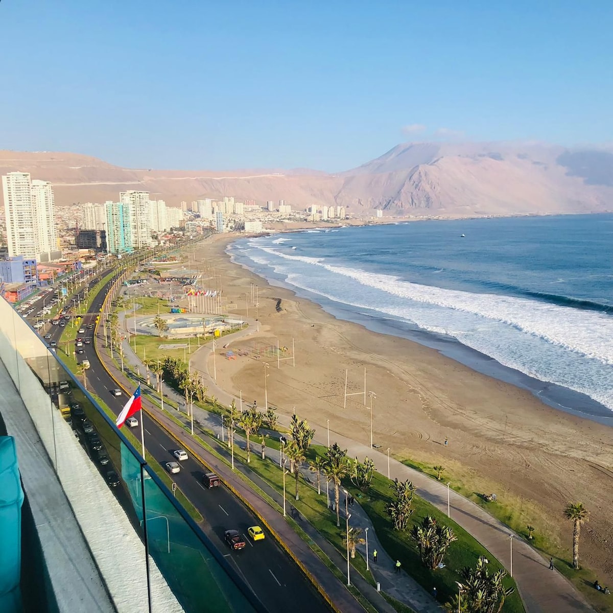 ¡Vive la experiencia única de Iquique desde este moderno departamento a pasos de Playa Brava! Despierta cada mañana con una vista privilegiada y relájate en la terraza mientras disfrutas del atardecer frente al mar. Ubicación céntrica, rodeada de restaurantes, cafeterías y atractivos turísticos, ideal tanto para turistas como para viajeros de negocios.
