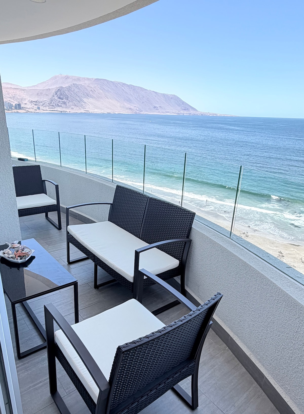 Disfruta de una increíble experiencia en nuestro departamento ubicado en el piso 23 en primera línea frente al mar, con vistas increíbles y cercano a puntos claves de la ciudad (Supermercados-centro comercial- bencineras-Restaurantes) El departamento se encuentra equipado y amoblado completamente para que tengas una experiencia más cómoda, para un máximo de 4 personas con cama matrimonial y sofá cama, una terraza que te permitirá disfrutar y compartir mientras ves un lindo atardecer.