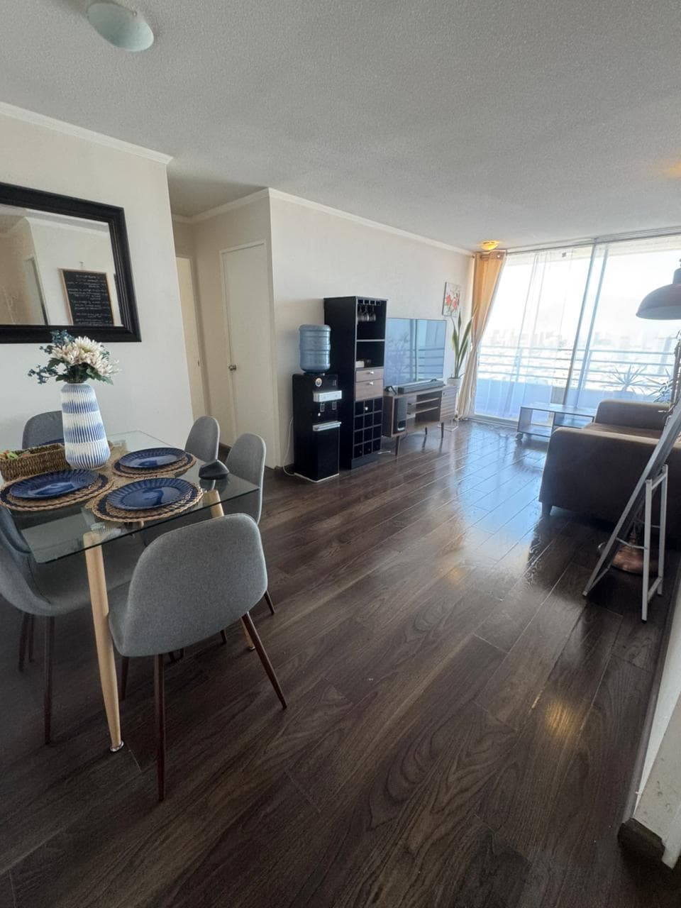Disfruta de una estadía cómoda en este acogedor departamento en Iquique, ideal para familias, parejas o viajes de trabajo. El alojamiento cuenta con 2 dormitorios, 1 baño, cocina equipada, living con Smart TV y terraza . Acceso a la Plaza Prat, Paseo Baquedano, Zofri y el Museo Corbeta Esmeralda. La ubicación te permitirá disfrutar tanto del borde costero como de la zona comercial y cultural de la ciudad. -Wifi gratuito -Cocina equipada -Conserjería 24 horas -Estacionamiento privado