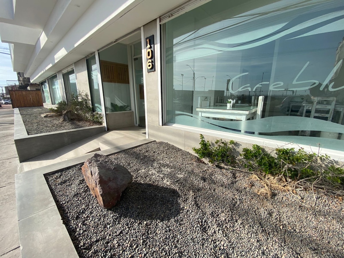 ¡Solicita tu café de bienvenida al momento de tu llegadal! cortesía de Éclat Hotel Boutique. Disfruta del fácil acceso a tiendas y restaurantes populares desde este encantador espacio para quedarte. Conoce lugares emblemáticos de Iquique como: Barco museo esmeralda, Catedral, Mall zona franca, Muelle de Iquique, Playa cavancha, etc. Y accede a tours para conocer la belleza del interior de Iquique (Oasis de pica, Gigante de atacama, Valles del interior, etc).