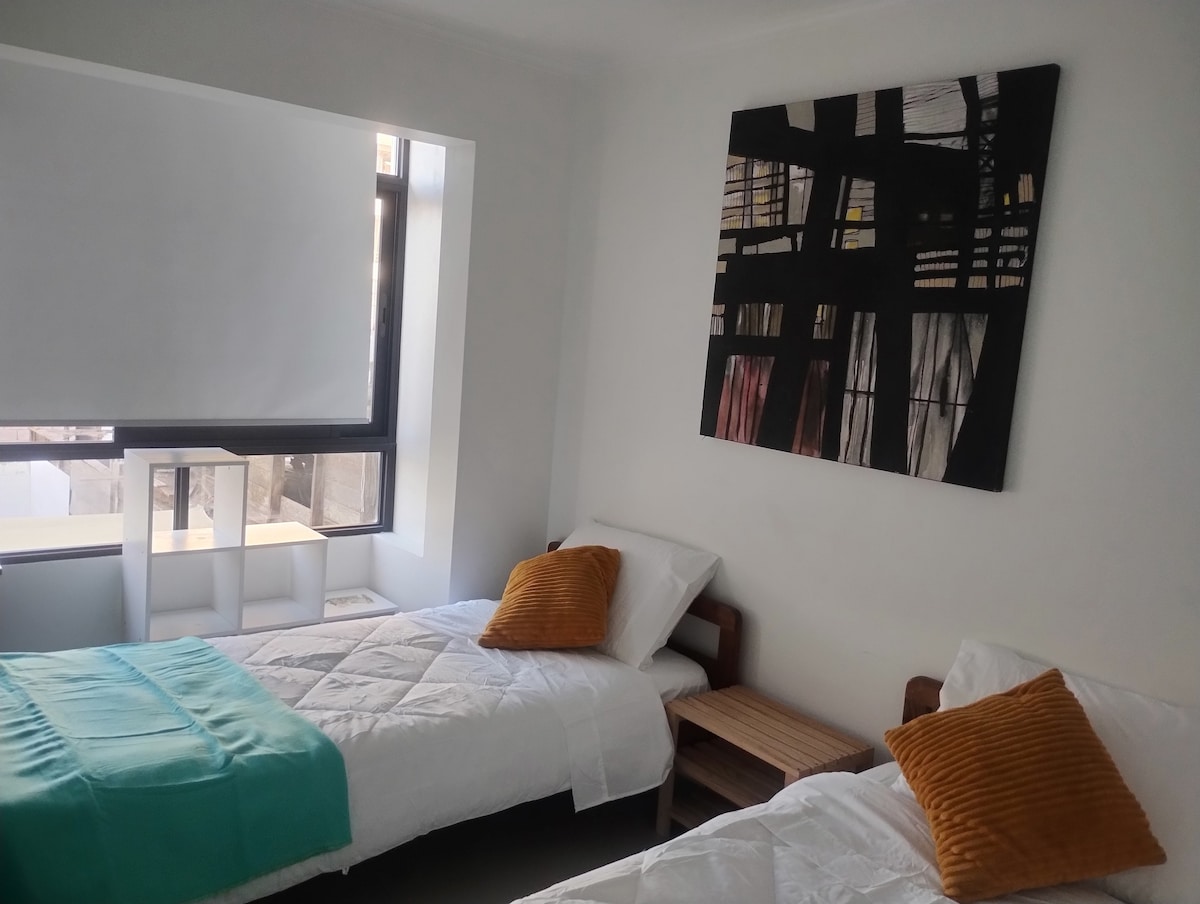Acogedor loft en Pampa Hotel Boutique, ideal para familias o amigos (capacidad máxima 4 personas). Cuenta con cocina full equipada, baño privado, agua caliente, aire acondicionado, wifi, TV cable y amenities. Ubicado en el corazón de Iquique, cerca de playa, comercio y atracciones turísticas. Perfecto para una estadía cómoda y conectada.