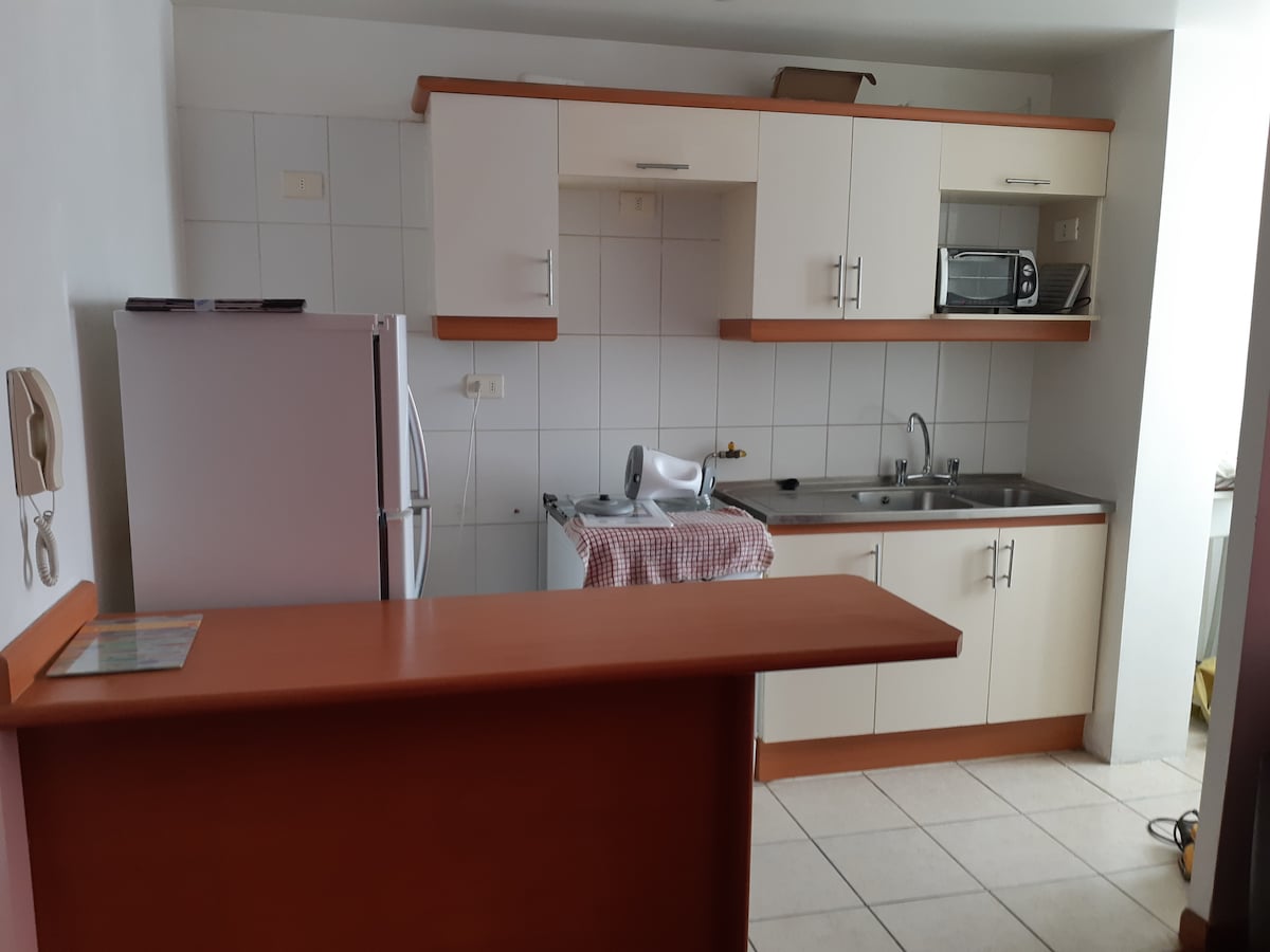 Departamento amueblado de 1 dormitorio con cama matrimonial, con futón en living, completamente equipado, con dos televisores, cocina y horno eléctrico,minipimer, tostadora de pan, microondas, 1 baño con termo, secador de pelo, cable, wi-fi y estacionamiento. El edificio cuenta con conserje las 24 horas y circuito cerrado, contando con 3 ascensores y quinchos con vista panorámica.