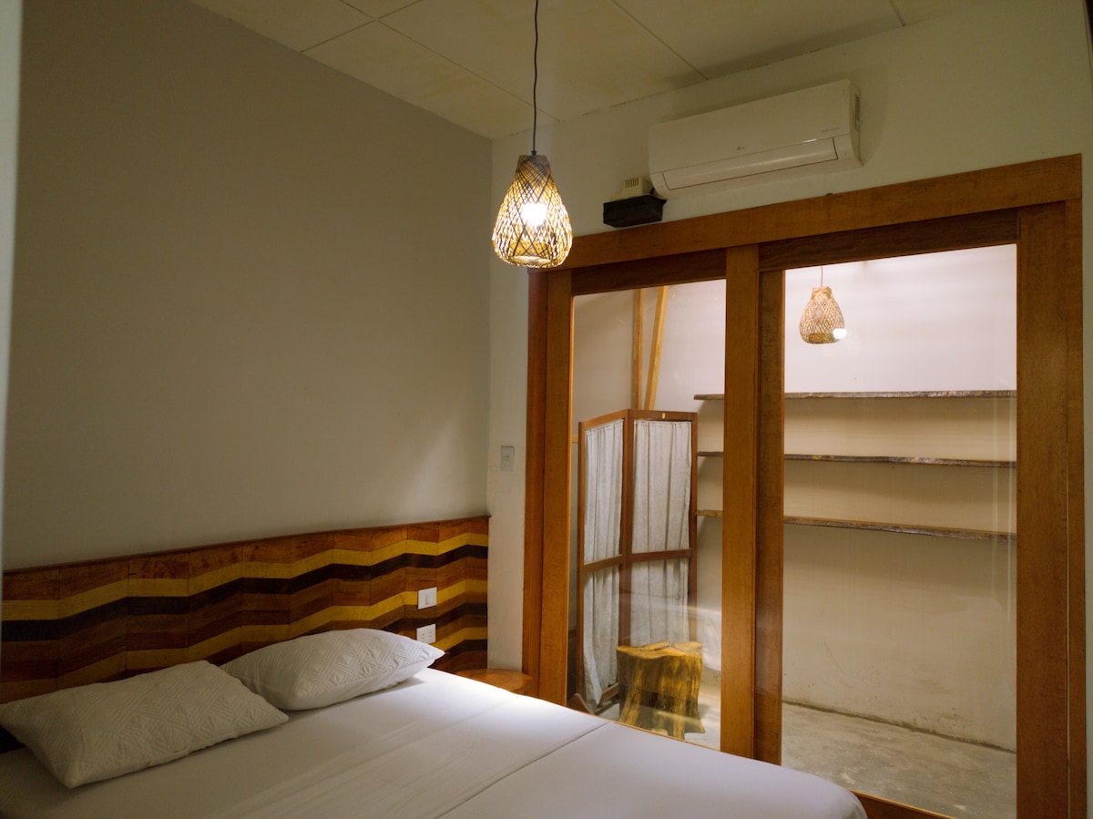 Disfruta de nuestra habitación con aire acondicionado, zona de trabajo, WiFi Starlink en el distrito de Punchana. A 5 minutos de la Plaza de Punchana y a 10 minutos del centro de Iquitos. Contamos con cochera para moto lineal y parrilla en el patio trasero.