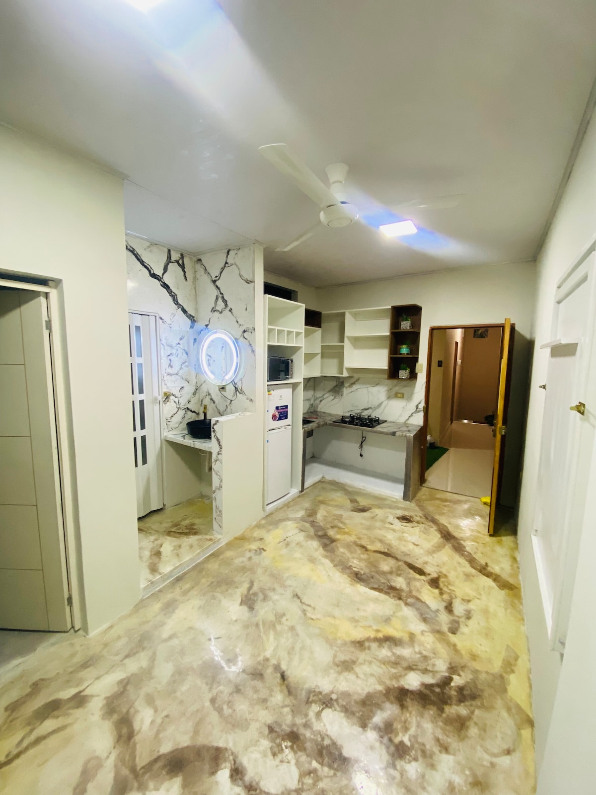 Relájate en este espacio fresco, tranquilo y elegante. Con acceso a la concurrida Av. NAVARRO CAUPER Y Av. 28 DE JULIO , en donde encontrarás fácilmente transporte público o particular. El Mini depa está ubicado cerca al Hospital Regional; a tres minutos de la plaza Punchana, restaurantes y el puente nanay, diez minutos del centro de la ciudad y a 15 minutos del Mall Aventura . Ubicado en el segundo piso de un departamento de estreno, para que su estadía sea como en casa.