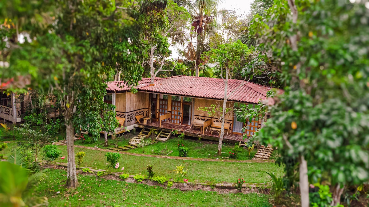 Casa amplia para llevar a toda la familia y/o amigos a este fantástico lugar rodeado de naturaleza. A 10 minutos de la ciudad de Iquitos. Contamos con WiFi para tener la experiencia completa vegetación y conectividad.