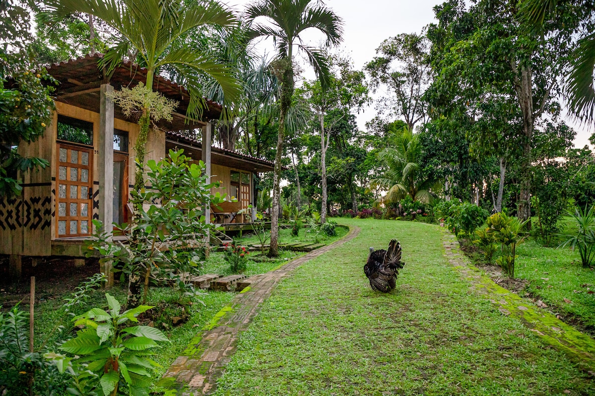 El Bullicio de la Cabaña, ubicada a orillas del Lago de Rumococha, combina sencillez y confort. Aunque en el día se escuchan ruidos de fábricas, el lago conserva su encanto y ofrece paisajes únicos. La cabaña cuenta con sala comedor amplia, alberca e internet WiFi. De noche reina la calma y durante el día puedes navegar, pescar o fotografiar la naturaleza. Un lugar auténtico para descansar y disfrutar de la Amazonía.