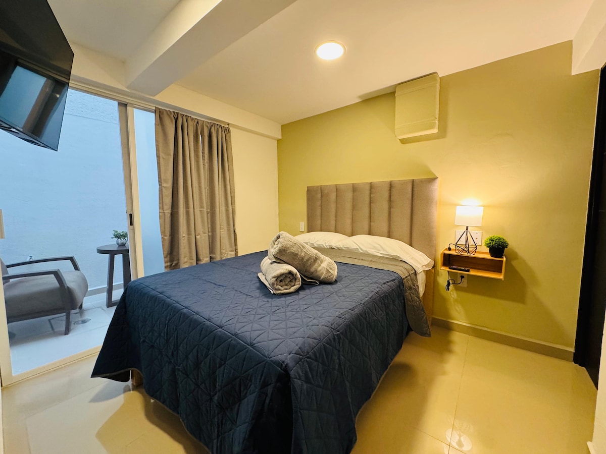 Este espacio esta diseñado para un dia de descanzo rutinario. Solo cuenta com lo que se ve en fotos. 😊 A su alrededor de este espacio cuenta con farmacias,negocios de comida y enfrente esta un GYM y 3B lo que hace mas facil de realizar tus comprar. 👌🏻 Es un lugar seguro y tranquilo 🎉 Bienvenidos 🤓