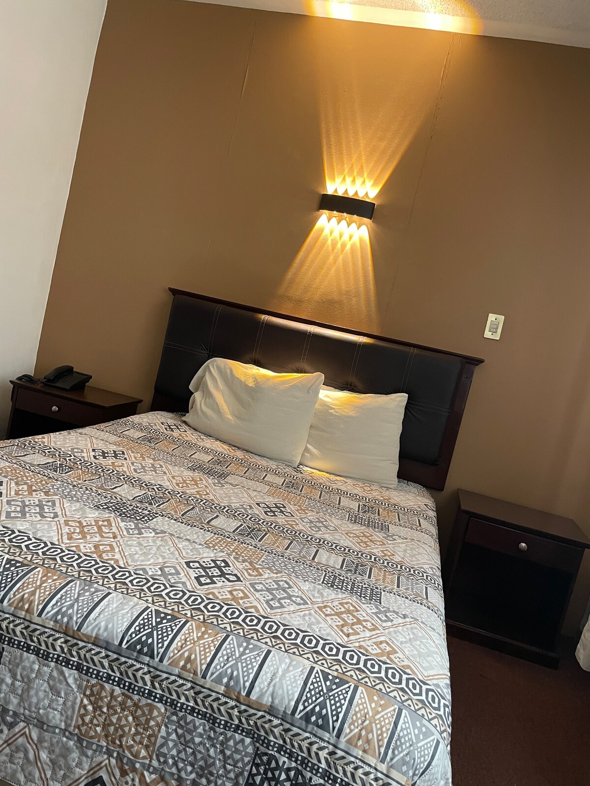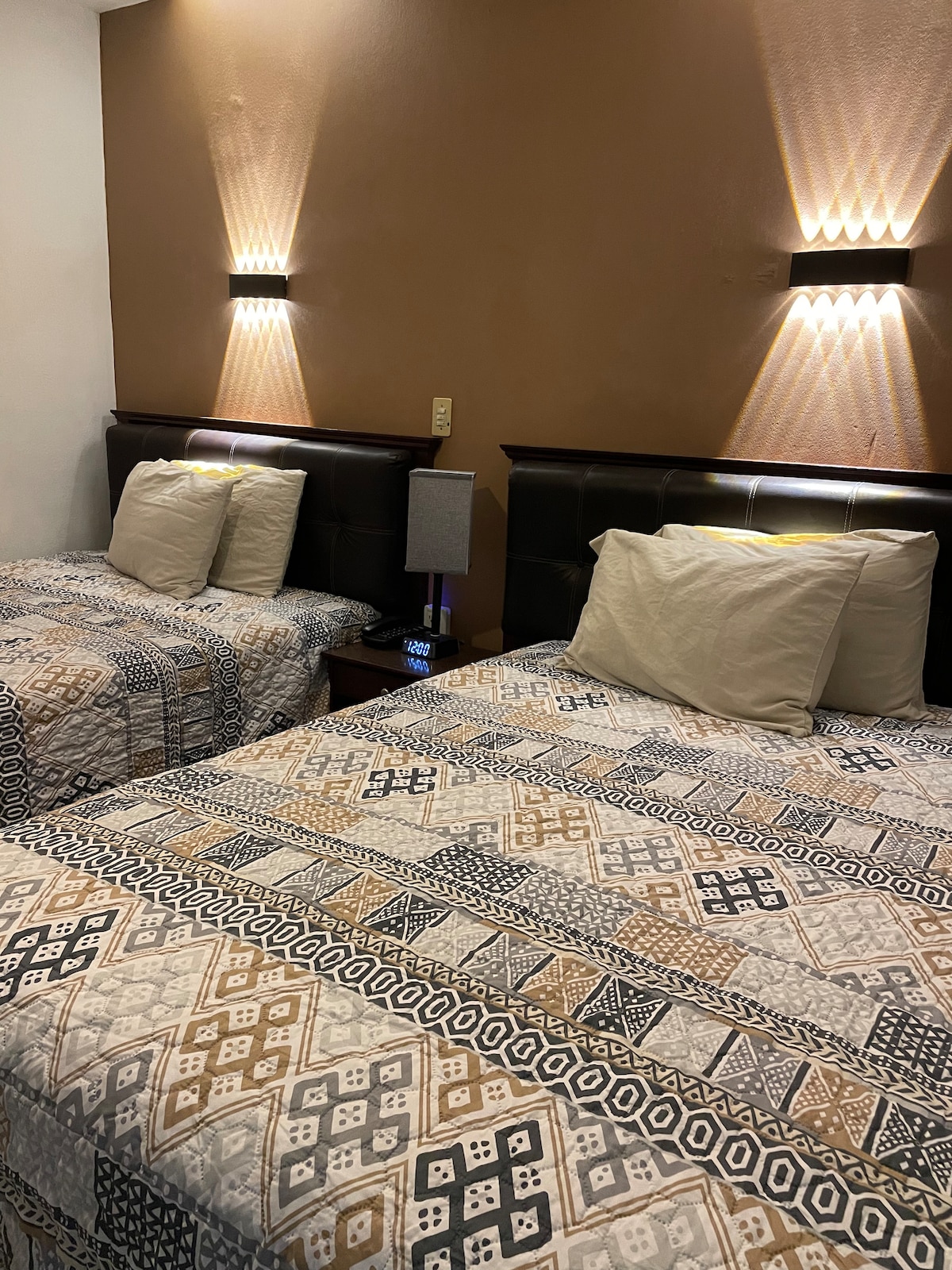 Contamos con 8 habitaciones privadas tipo hotel con capacidad de hasta 5 personas, cada una con baño, televisión con cable, aire condicionado, entre otras amenidades. Estamos ubicados en una zona centrica de Irapuato, nos encontramos muy cerca del Estadio SLC, al igual que del centro de la ciudad y de varios establecimientos como MacDonalds o Corpovino. La habitacion NorteAmericana cuenta con 2 camas individuales y 1 cama matrimonial.