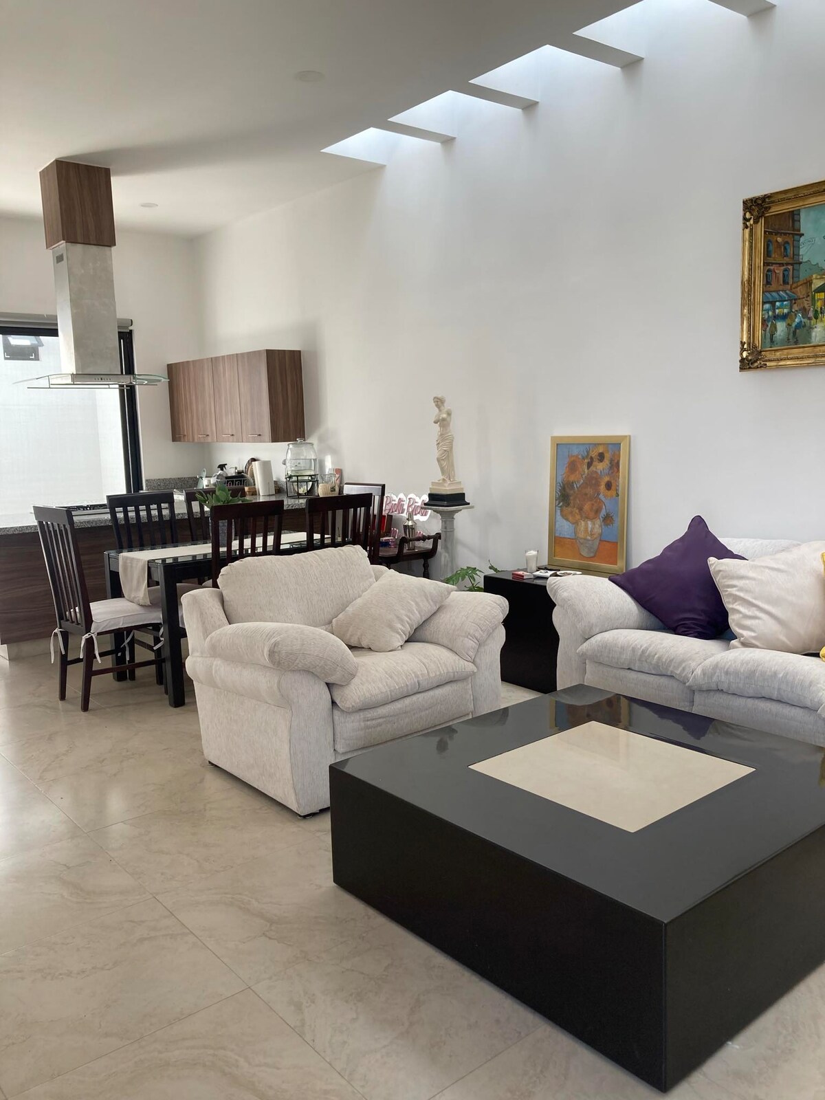 Casa habitación, capacidad para 7 personas. Totalmente amueblada, excelente ubicación, todos los servicios para hacer de su visita una agradable estancia. Sala, comedor, cocina equipada, con patio y terraza al frente, cochera para 3 vehículos. Se ubica dentro de una de los residenciales más seguros y tranquilos. Conectada a varios puntos de la ciudad por amplias vialidades. Limpieza es realizada por personal altamente capacitado la cual incluye sanitizar espacios.