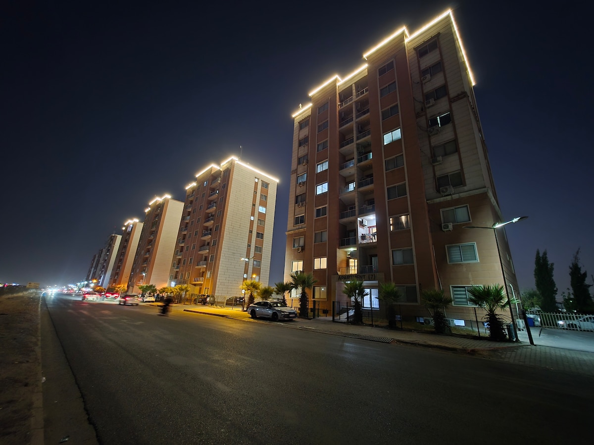 Enjoy a stylish one-bedroom apartment in Erbil’s Golden Zone, just steps from Sami Abdulrahman Park. This modern, high-security space offers a bright living area, cozy bedroom, and fully equipped kitchen. Minutes from Erbil International Airport and surrounded by fancy cafés and top restaurants, it’s perfect for business travelers, couples, or solo guests seeking comfort and a prime location. Fast Wi-Fi, air conditioning, and 24/7 security ensure a smooth and relaxing stay.