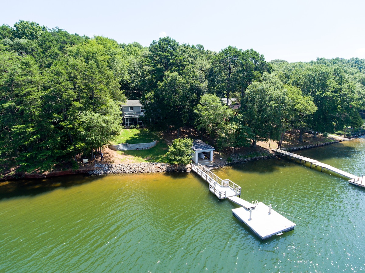 Quiet 4,500 SF lakehome (sleep 16+) w/ a 2-level dock is perfect for lake activities including swimming, jumping/diving (!), tubing, kayaking, paddle boarding, fishing, ... The private neighborhood is surrounded by trees & flowers. If you’re lucky, you might see some wild deer and local osprey! Only minutes away from great restaurants, shopping & recreational activities in Mooresville/Lake Norman areas, Lowes' Head Offices, Davidson College, and a quick drive to all that Charlotte has to offer.