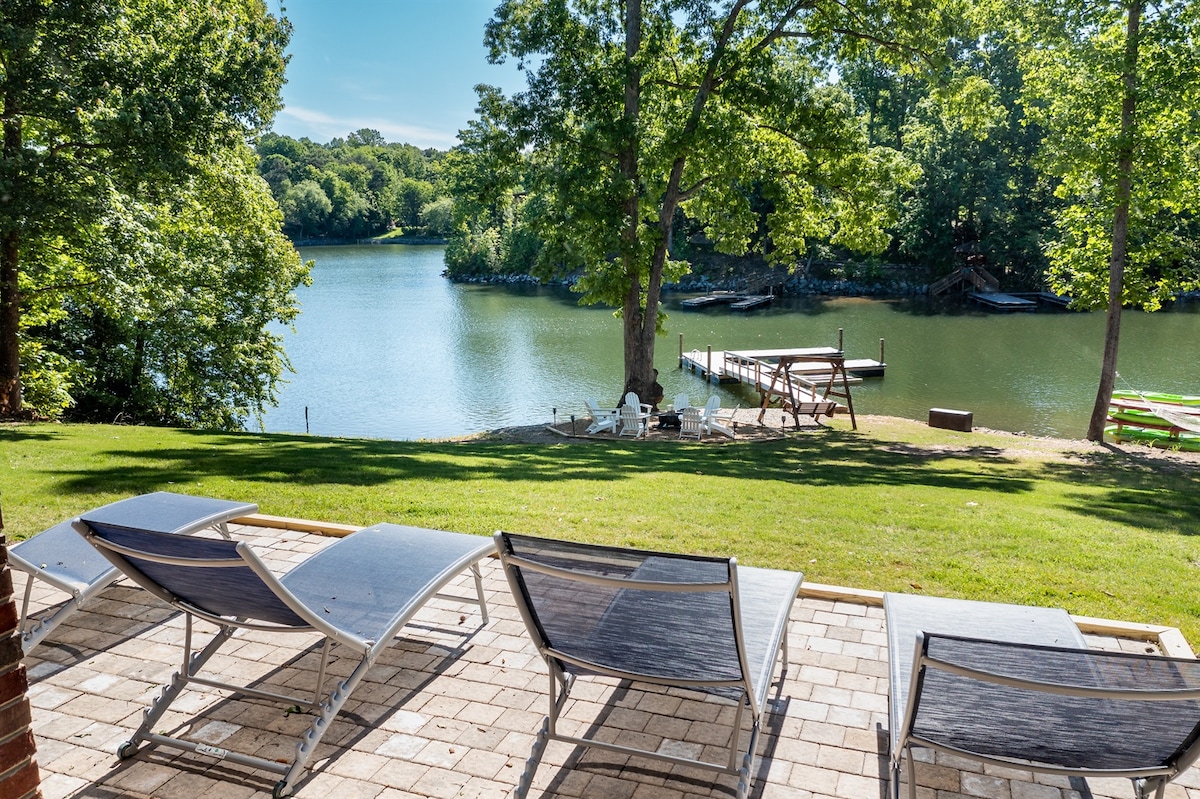 Lovingly renovated 1960s mid-century modern lakehouse with absolutely stunning main channel views and 15 feet deep water off the private dock. Enjoy over 4000 sf of lakefront living with family and friends on a beautiful gated property. Tons of outdoor living space with multi-level decking and an outdoor dining and grilling area. Only 35 minutes from Charlotte-Douglas International Airport. Boat slip on property, in addition to easy access to a public boat launch or boat rentals nearby.
