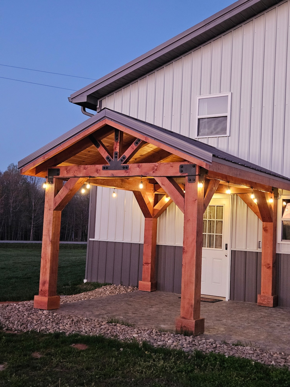 Relax with the whole family at this peaceful setting. Close to interstate 77 and 40, this rural farm is rustic elegance. With a library for the family and a vintage-inspired home theater with classic DVD's, you have plenty to do even on rainy days. The bedroom has a king bed, and the main room includes a trundle with two twins and a futon sofa. This 900 sq. ft. guesthouse was the old welding shop from years ago and gives you access to walking trails and the farm burn pit.