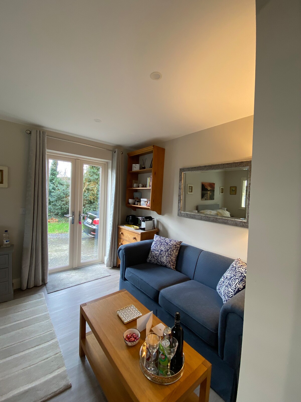 An ideal lakeside location for wedding guests of Glasson Lakehouse (1.4km), Wineport Lodge (6km) and hotels and venues in the surrounding area. A perfect setting for getaway breaks, walking and relaxing. Self contained with your own private entrance and parking on site. Beautifully furnished bedroom, sitting area and private bathroom. Stylish and luxurious. Bathrobes, slippers, toiletries provided. Nespresso coffee machine, tea making facilities, breakfast bread basket. Complimentary mini bar.