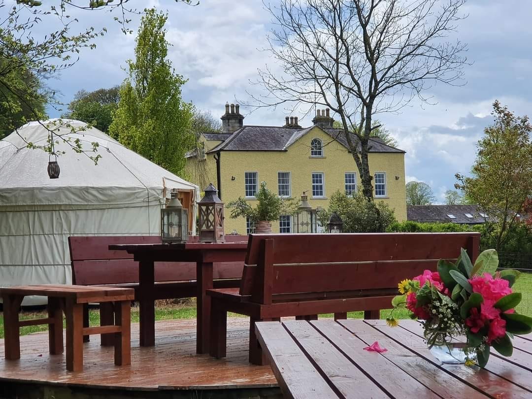 Enjoy the lovely setting of this romantic spot in nature located on The Wicklow Way Walk in breathtaking scenery. Each yurt has a double and 2 single beds. There are 4 yurts, a log cabin and a Shepherds Hut all set on this beautiful Georgian House and Farm. The camping kitchen is set up with an oven, hob, toaster, kettle, fridge, wood stove, pool room, microwave and extra hot water bottles for your comfort. Each yurt has a granite bbq and campfire area.
