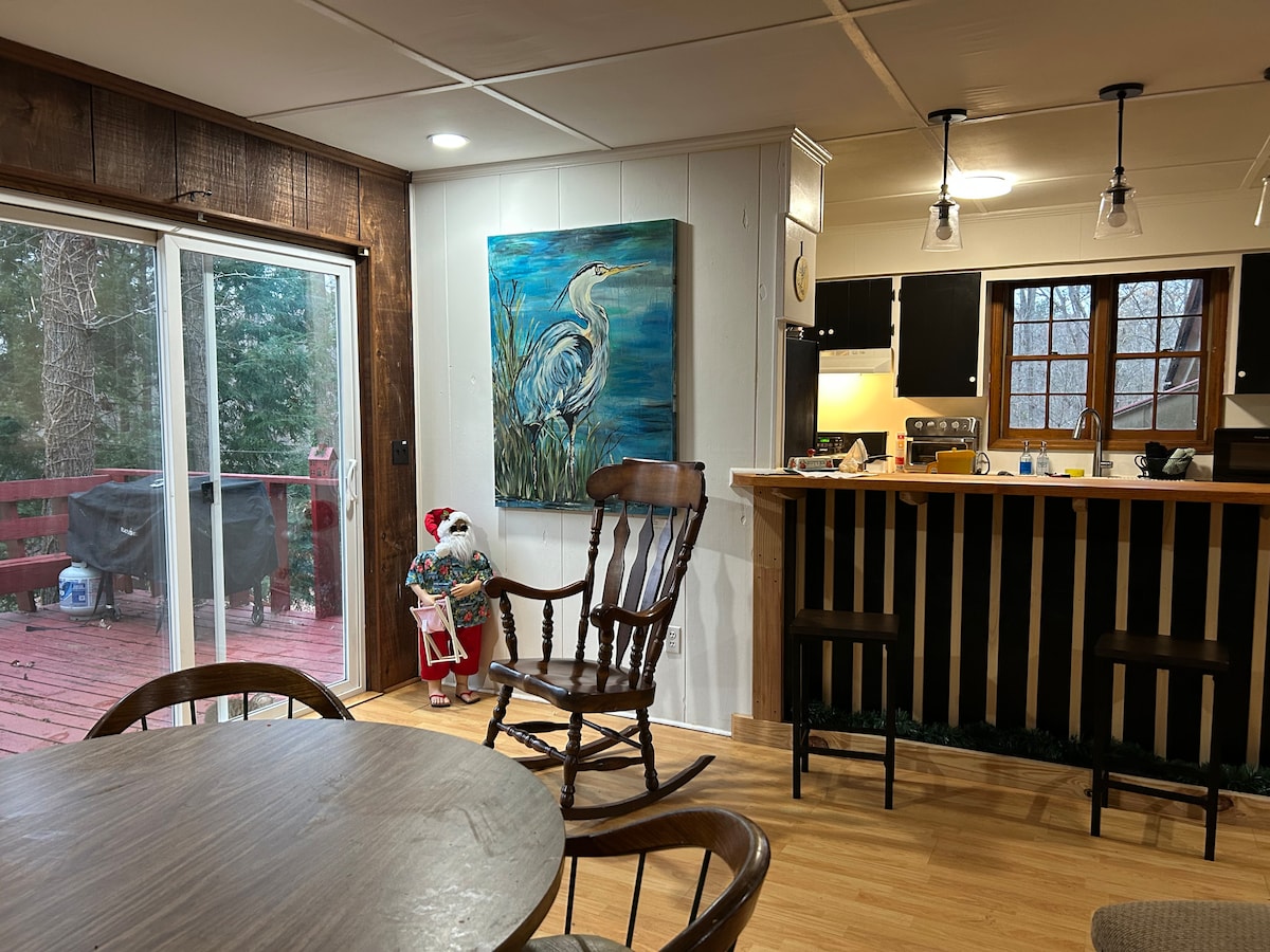 Our beautiful cottage for adults only is set on a private spring fed pond with all amenities to unwind from the day-to-day hustle. A porch with rocking chairs, brick fire pit and outdoor lighting in the courtyard make this your destination for relaxation. Take a walk in the 20 acres of wooded trails, fish, kayak, paddleboat, read a book, write, listen to music or just take a nap. This property lets you unplug from the world, relax, and connect with nature without giving up modern conveniences.