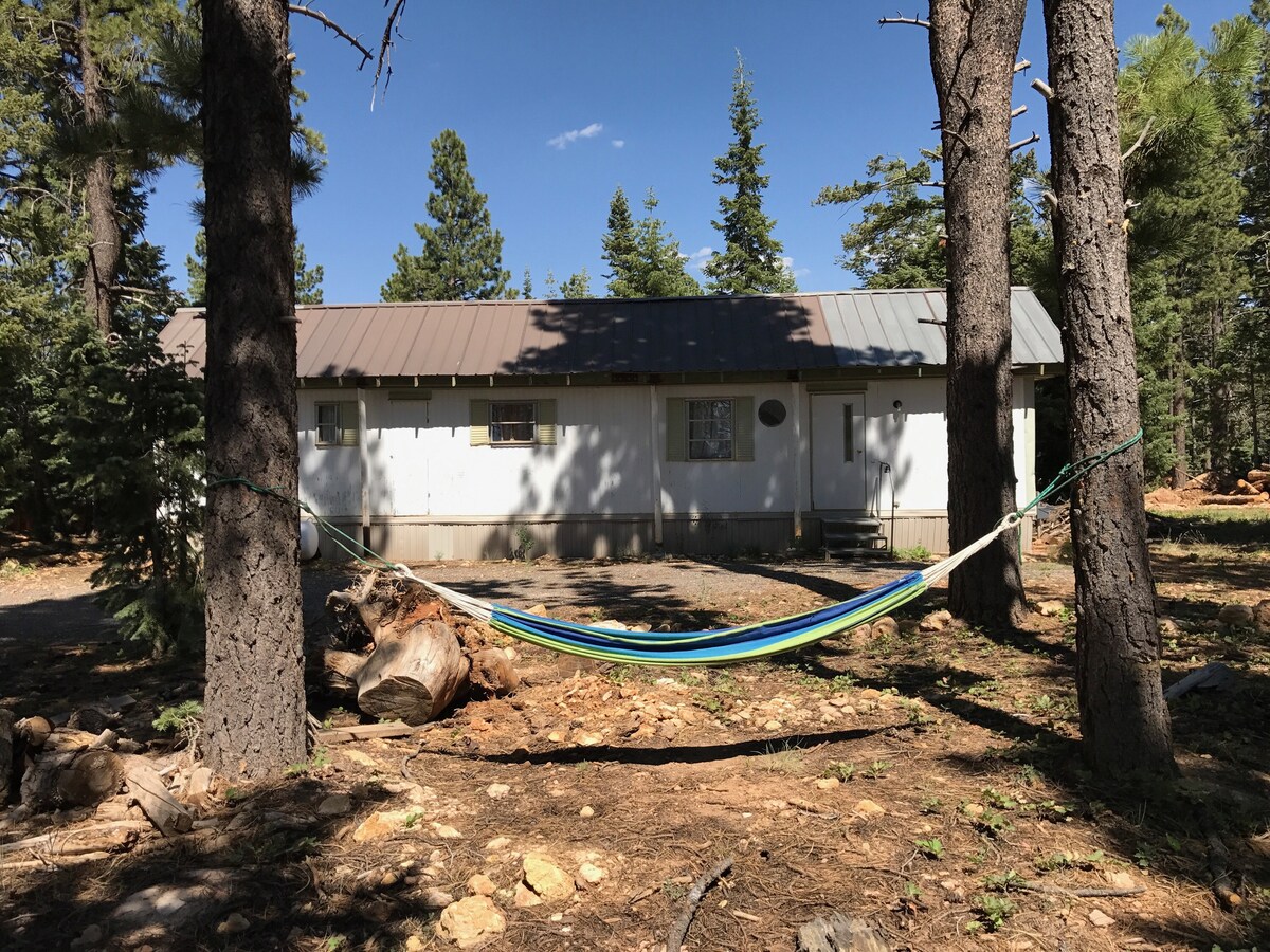Close to Zion, Bryce Canyon and Cedar Breaks. Tucked deep inside the Dixie National Forest, 8800ft altitude. Walking distance of fresh streams and lakes. Fish, relax and site see nature’s beauty. We charge a pet fee to offset the extra cost of cleaning up. 1970’s mobile home will take you back in time, but still comfortable, clean and affordable. Wild animal habitat. Deer, raccoon, skunk, squirrel, mouse, bear, badger, antelope, mountain lion. Please be mindful.
