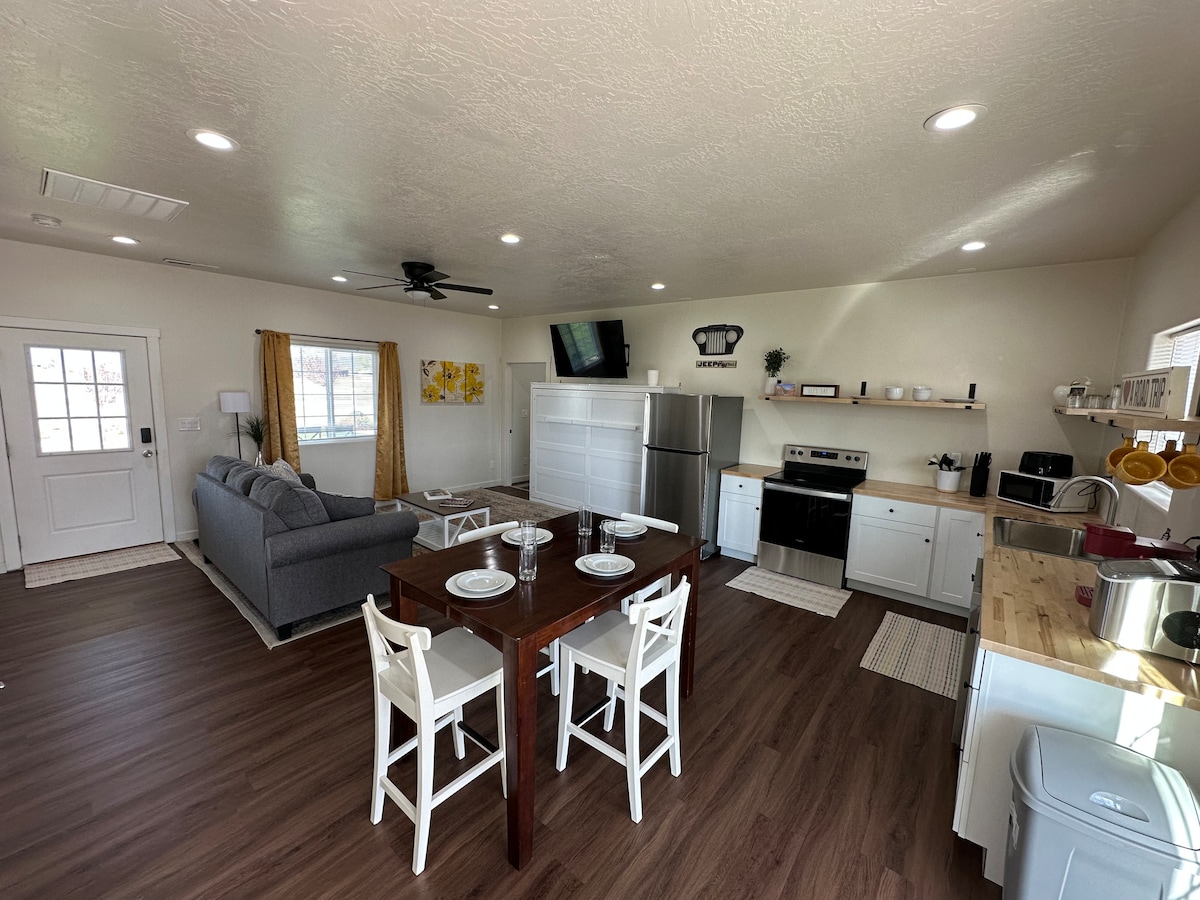 Road Trippers Retreat at kanarraville falls is the perfect place to relax after seeing all the natural beauty in southern Utah. Including the world famous Kanarra Falls, which is located less than a mile away. Other world famous sites that are located within a short drive are, Zions National Park (50 mins), Kolob Canyon National Park(15 mins), Bruce Canyon National Park (1.5 hrs), along with many local trails and sites. This unit is on the ground floor with a separate unit above on the 2nd floor