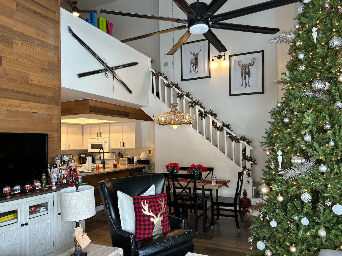 Unveiling Serenity at Ridges at Chalet Village: Where Elegance Meets Cozy Cabin Charm Nestled within the prestigious Ridges at Chalet Village, this condo is more than just a ski and mountain bike retreat; it's a haven of sophisticated comfort, designed to melt away winter's chill and soothe your soul. Step inside and discover: Elegant Design with a Rustic Twist: Soaring cathedral ceilings adorned with exposed beams draw your gaze toward breathtaking mountain vistas.