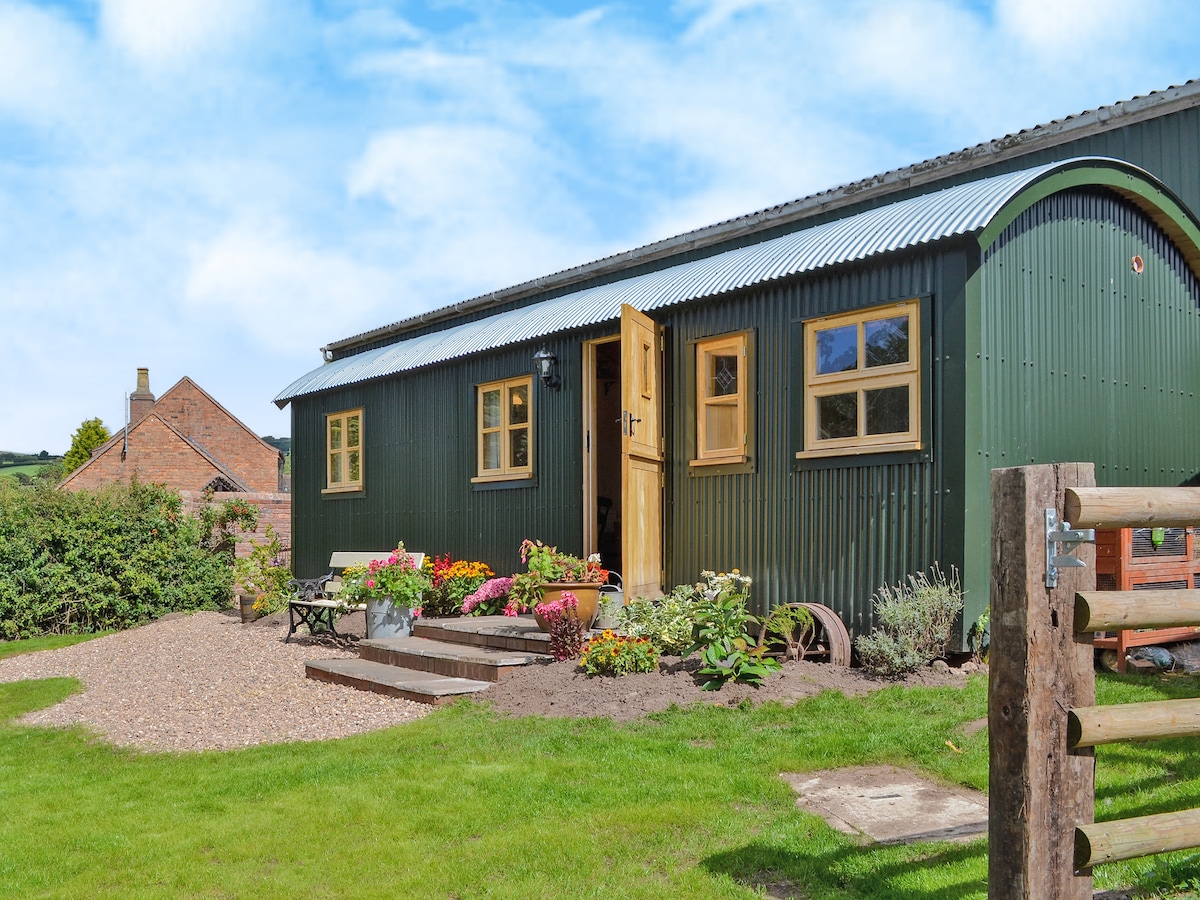 As seen on BBC2's My Unique B&B! Located in a World Heritage Site, Ironbridge Gorge, tucked away in a quiet residential area. A stones throw from both countryside and convenience. Enter through the secret gate in the hedgerow, Scout's Meadow is nestled in its own private grounds, with wood fired hot tub, fire pit, pizza oven & veranda. The wagon has a cosy king bed, cooking facilities, fridge freezer and wood stove. Right next door is the bathroom with flushing toilet, sink and hot shower.