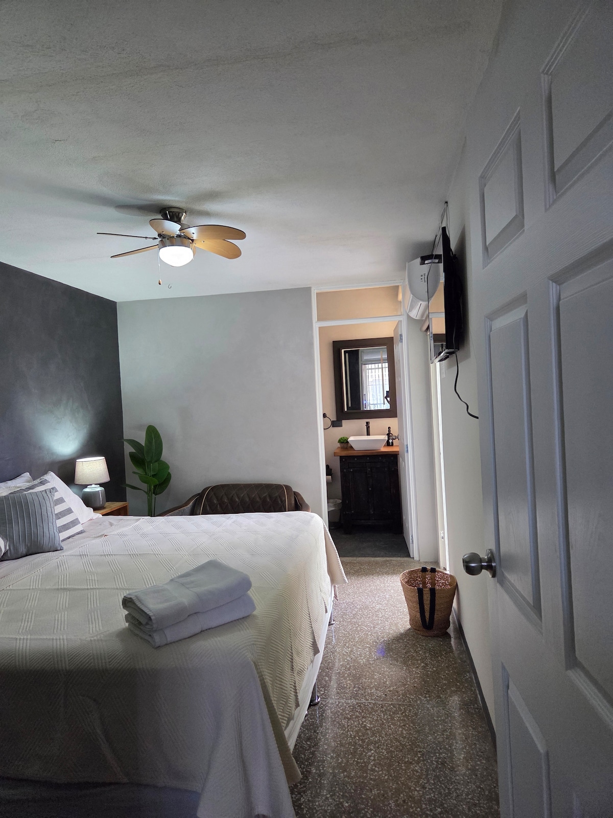 Relájate en este espacio tan tranquilo y elegante. Disfruta de una experiencia con estilo en este alojamiento en la mejor area de la ciudad, a pocos metros del aeropuerto. Con un balcon con jacuzzi y chimenea, nuestra suite de lujo tiene una vista impresionante a la ciudad. Es una muy buena opcion para ti para quedarte, tiene un estilo moderno, area para home office, nunca te aburriras mientras trabajas, conocelo!!