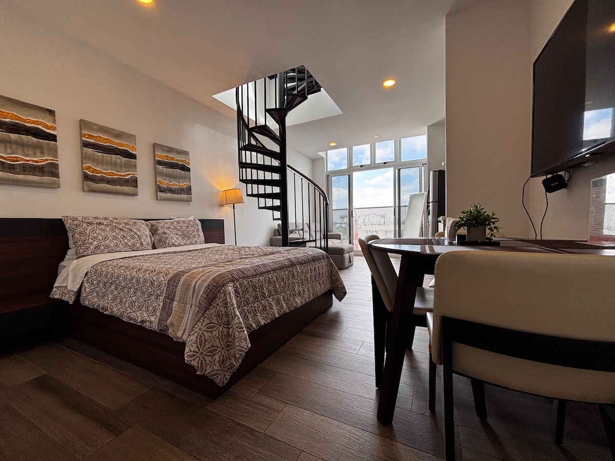 现代Loft,带私人露台,空调。机场
