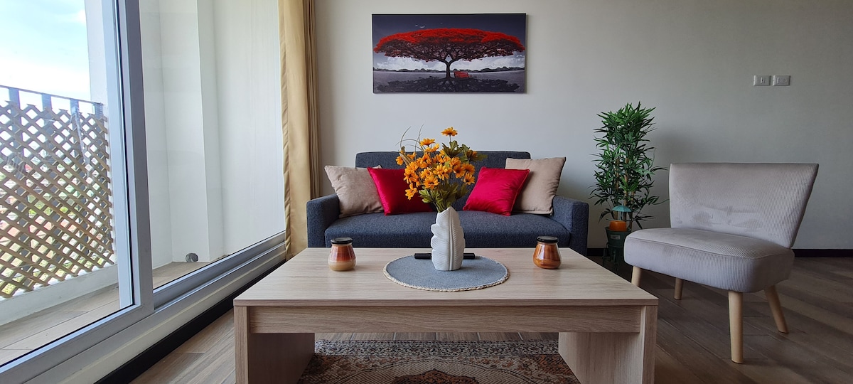 Enjoy a spectacular view of the volcanoes from your private balcony in this cozy, modern studio. It’s fully equipped with high-quality amenities, from a comfy queen-size bed to a handy sofa bed for extra guests. With a fully equipped kitchen, and black out curtains, you’ll have everything you need for a relaxed and fun stay. It includes one parking space, on-site gym and access to the building’s convenience store. Just 8 minutes from the airport is the perfect place for you and your beloved
