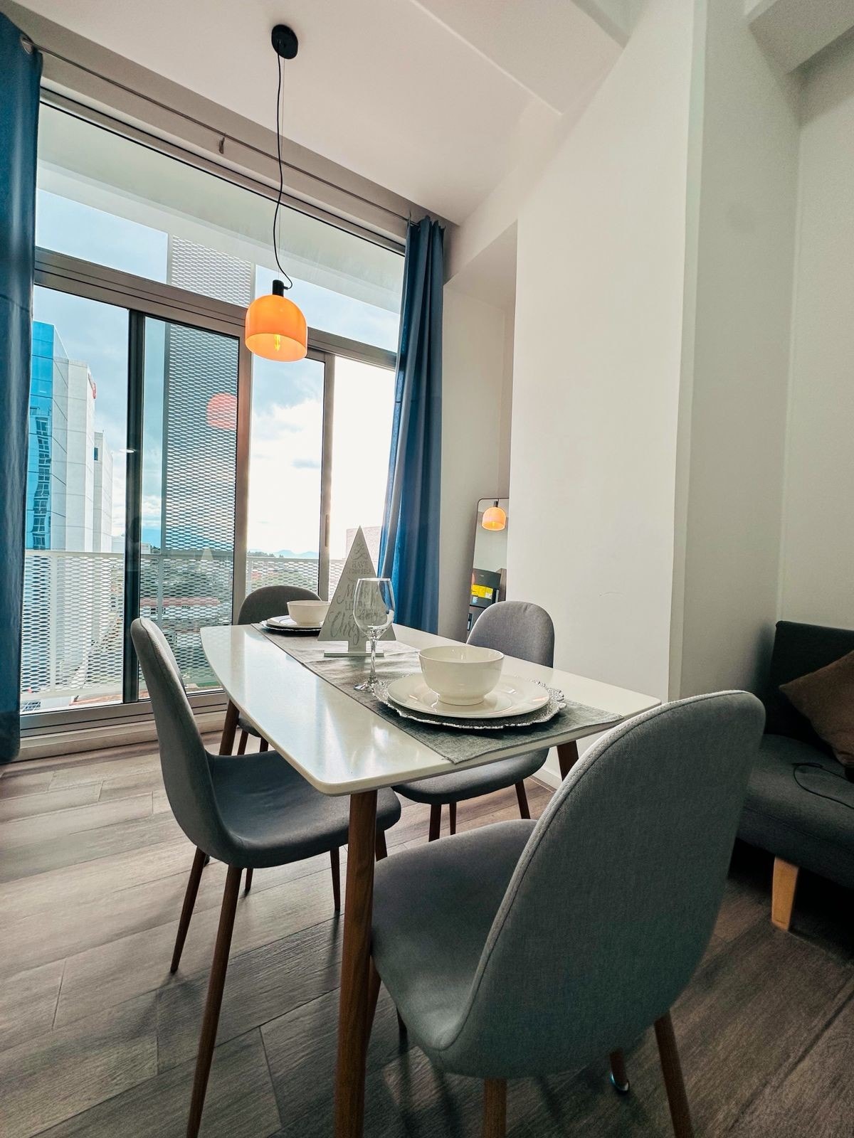 Imagina despertar cada mañana con vistas espectaculares en nuestra suite elegante y lujosa. Ubicada en una zona exclusiva, estarás a solo 10 minutos del aeropuerto. A pasos de tu puerta, encontrarás con restaurantes, salones, tienda y cafés. La suite incluye bicicleta para que puedas dar un paseo. Y cuando quieras relajarte o socializar, disfruta del área social que ofrece entretenimiento y espacios diseñados para compartir momentos inolvidables.
