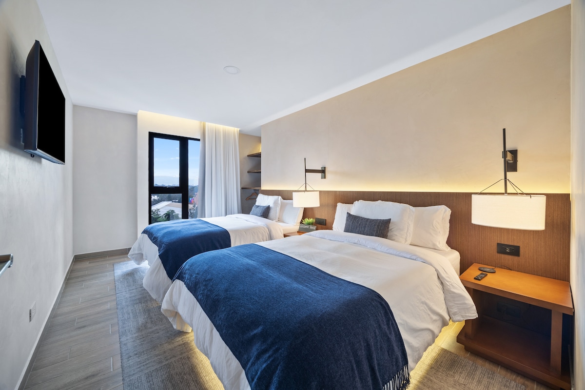 Enjoy a spectacular view of the volcanoes from your private balcony in this cozy, modern studio. It’s fully equipped with high-quality amenities, from a comfy queen-size bed to a handy sofa bed for extra guests. With a fully equipped kitchen, and black out curtains, you’ll have everything you need for a relaxed and fun stay. It includes one parking space, on-site gym and access to the building’s convenience store. Just 8 minutes from the airport is the perfect place for you and your beloved
