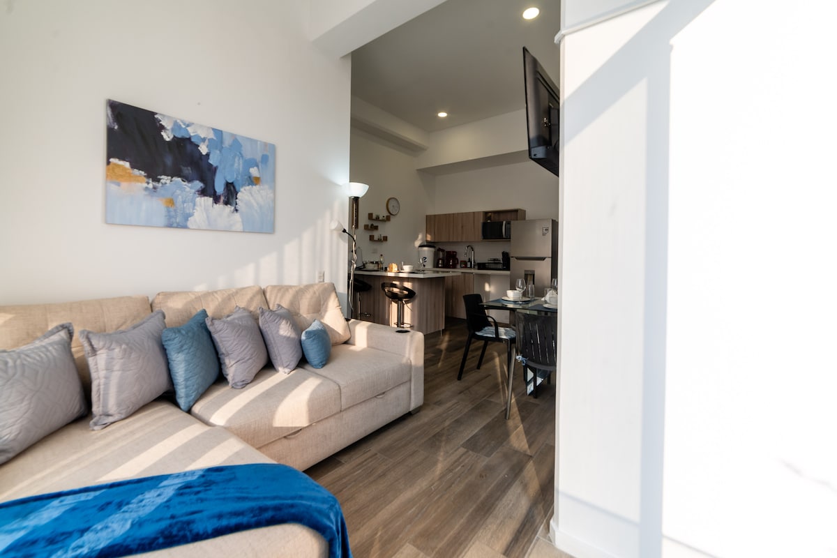 Imagina despertar cada mañana con vistas espectaculares en nuestra suite elegante y lujosa. Ubicada en una zona exclusiva, estarás a solo 10 minutos del aeropuerto. A pasos de tu puerta, encontrarás con restaurantes, salones, tienda y cafés. La suite incluye bicicleta para que puedas dar un paseo. Y cuando quieras relajarte o socializar, disfruta del área social que ofrece entretenimiento y espacios diseñados para compartir momentos inolvidables.