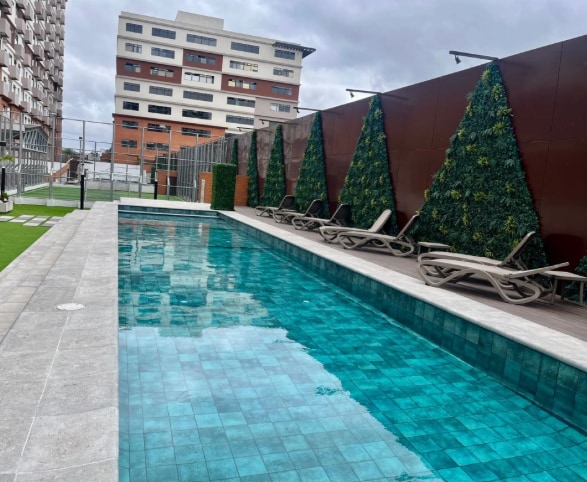 La mejor vista de la ciudad, frente a plaza Berlin, uno de los parques mas bonitos de la ciudad. Construido en el 2023, Con estación de transmetro en frente del edificio y acceso a ciclo via y scooters de alquiler. Apartamento de un ambiente con 1 cama king y un sofa cama Matrimonial, ideal para 3 personas.
