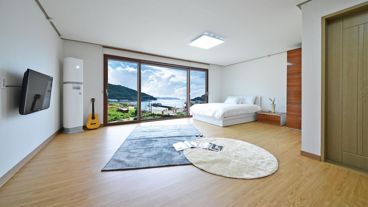조용한 작은어촌마을 휴식처입니다 정말 시간마다 계절마다 힐링되는 뷰가 멋진곳입니다 게스트하우스는 원룸형이며 통창으로 사계절 멋진 풍경을 마음껏 느낄수있습니다 관리동(호스트생활공간으로 마주칠수있습니다)을 제외한 모든공간(수영장 마당)과 소품장비등등 단독사용하십니다 2인숙소입니다 인원추가문의 받지않습니다 마당에서 즐기는 바비큐와 불멍 집앞이 바다여서 바다보면서 즐기는 모든순간 집앞낚시와 통발로 잡는 장어 가족과함께 연인과함께 온전히 힐링되는 시간 가져보실수있습니다 입실시간에 펼쳐진 노을과 아침의 푸른바다 밤에는 별빛가득한 밤하늘 어촌마을한바퀴 산책하시면 4계절의 자연을 마음껏 느낄수있어요 힐링가득한 시간되시길 바랍니다