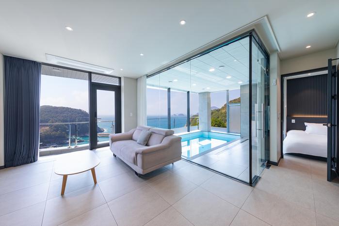 거제 오션뷰의 탁트인 힐링 공간 ROOM201오션뷰 스파 풀빌라 개별바베큐