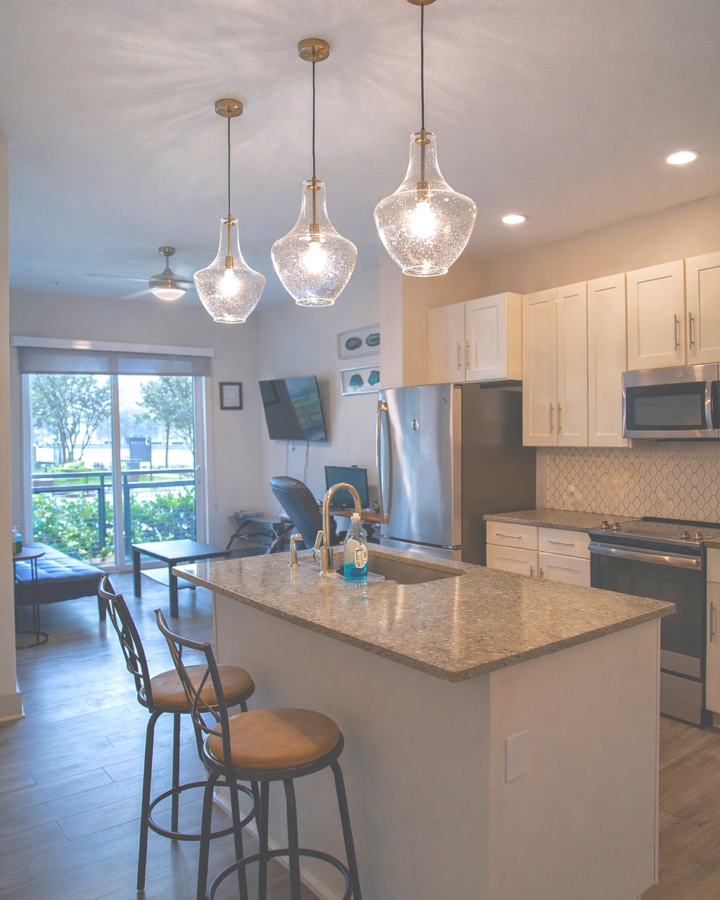 This sanctuary above the water offers a tranquil vibe with a private outdoor space. The penthouse-style apartment invites you to bask in peaceful mornings or unwind beneath the twinkling lights of the pergola at night. Nestled in charming Farmers Branch, just north of Dallas, it’s the perfect getaway -not far from all the DFW Metroplex has to offer but close to peace & comfort.
