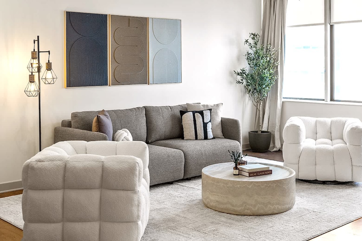 ★JUST LISTED ★ ★ Dedicated office — perfect for remote work ★ Blazing-fast free WIFI for seamless video calls & streaming ★ Private patio screened-in for morning coffee or wine nights with your own back garden ★ Full-size washer & dryer in unit → Wood-laminate floors throughout → Spa-style bath with floating backlit mirror ★ Elegant Design → King bed with luxury linens for a great night’s rest → Walk-in closet with plenty of storage ★ Reserved parking for 2 cars → No deposit & no pet fees