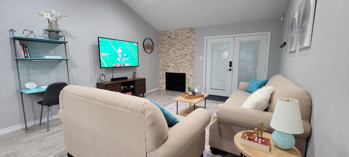 Enjoy a stylish experience at this centrally-located spot. In this part of the city, you will find buzzing restaurants and bars within walking distance, the American Airlines Center a short 6 min drive and the prestigious North Park mall only 15 min away. Enjoy the quality of the thoughtfully decorated interior, relax in the back patio or simply relax in the super comfortable beds. Wether it’s a short or long stay this townhouse is for you.