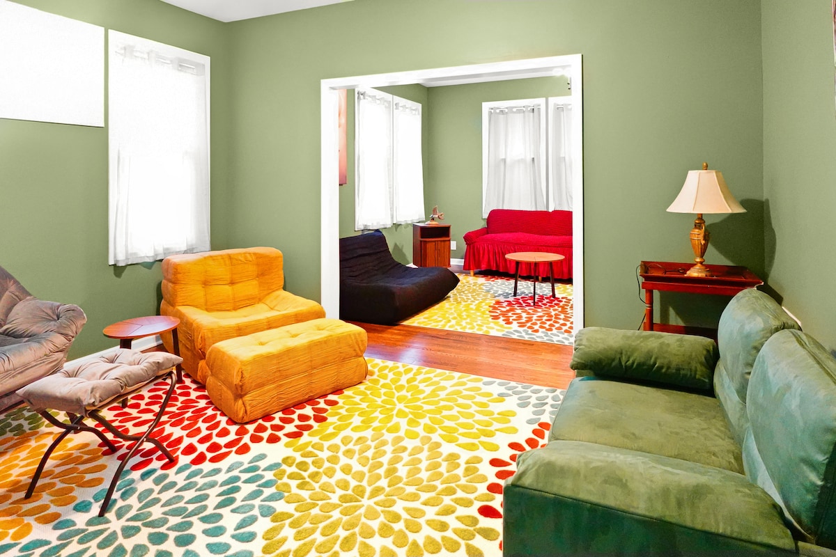 Large 2 bedroom apartment in residential area in N. Newark. Space includes 2 beds that accommodates up to four guests. Includes large backyard with furniture. Walking distance to Branch Brook Park, light rail & buses to Newark Penn Station/NYC. Nearby MetLife Stadium, Prudential Center, Red Bull Stadium, NJPAC, & American Dream Mall. Preferred space for tourists, concert/sporting event attendees, and pre-/post- voyage stays. No events or parties. Not a space for large gatherings.