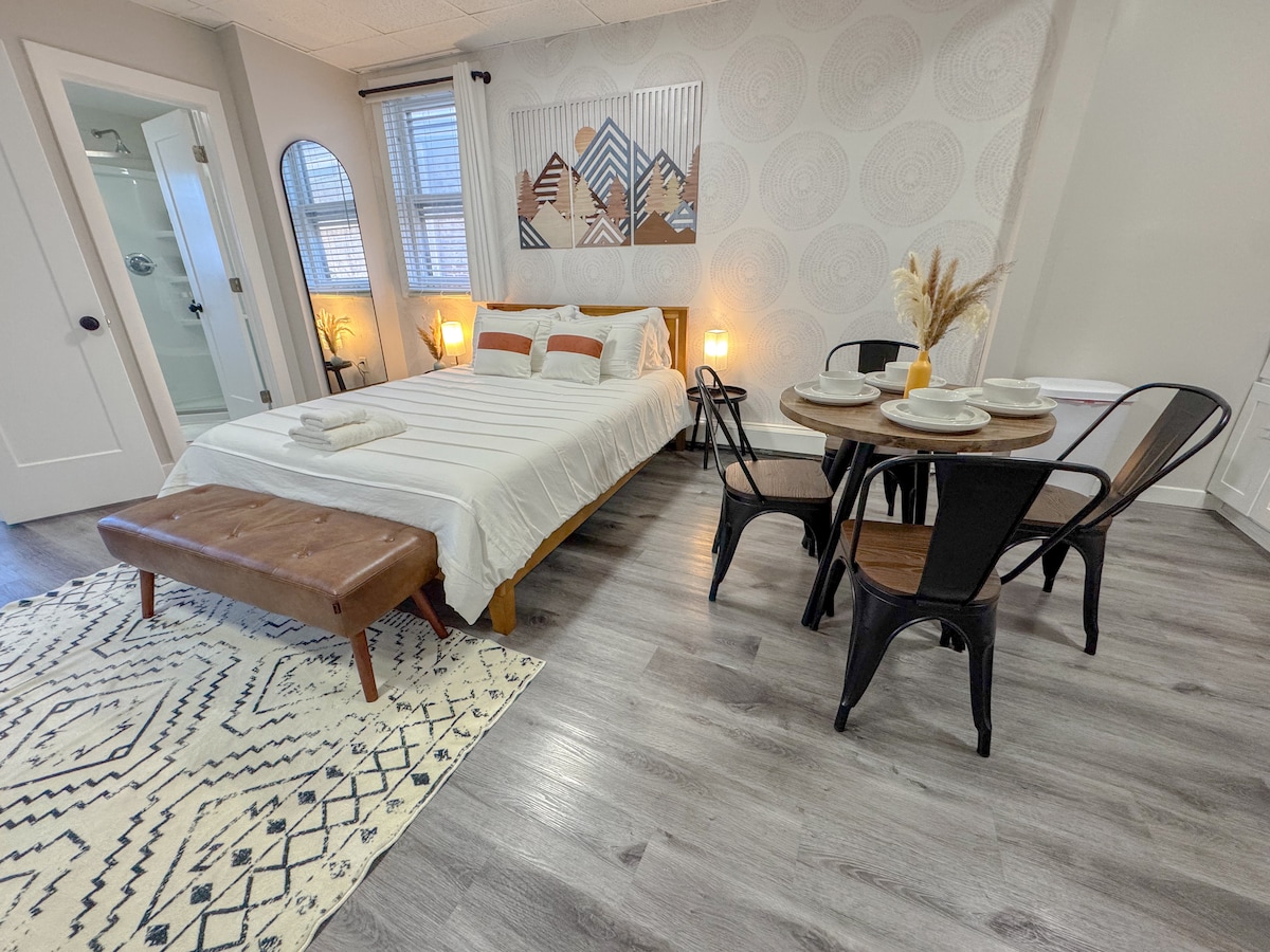 Unique studio apartment completely renovated with private entry and self check in from electronic lock. Queen bed w/ Sealy pillowtop mattress and blackout curtains for the best sleep. Free laundry detergent! In unit laundry. Access to the backyard and BBQ grill. 420 friendly in backyard only. Central to highways, shopping, and restaurants. Easy 40 min commute to NYC via Orange NJ Transit station 7 mins walking. Minutes from Newark Airport, Prudential Center, American Dream & Metlife Stadium